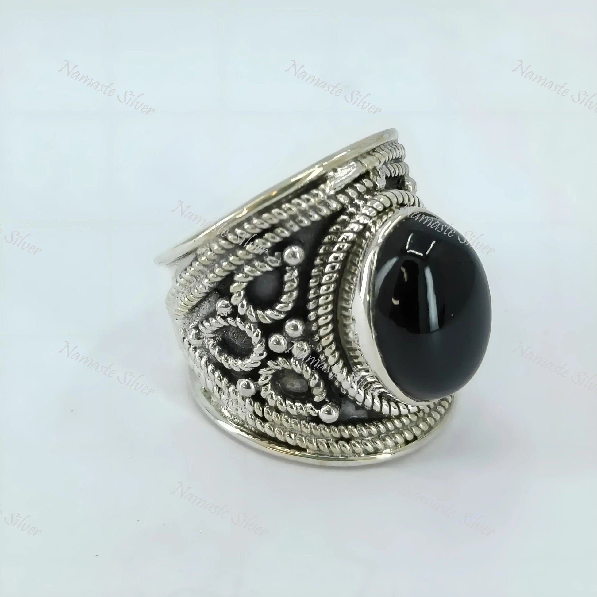 The bold and mystical [Black Onyx Ring, 925 Sterling Silver Cocktail Ring, Natural Black Onyx Oval Gemstone Handmade Boho Jewelry, July Birthstone, Gift for Him] is not only a striking statement piece but also a versatile ring perfect for a variety of occasions. Whether it's a genuine promise of love, a Christmas surprise, or an engagement or proposal, this elegant ring embodies timeless charm and personal meaning.