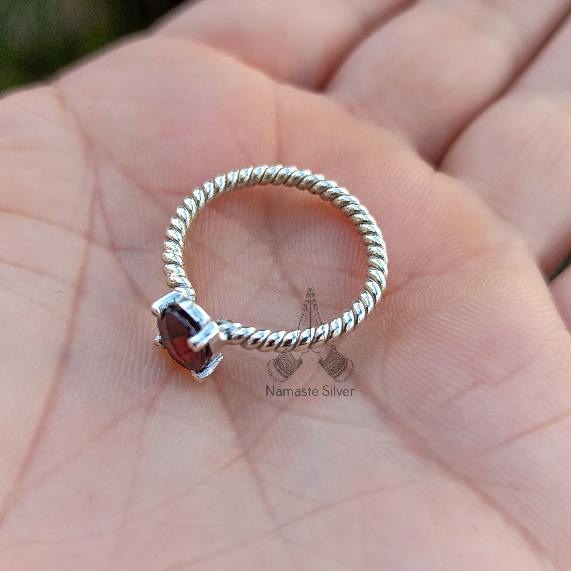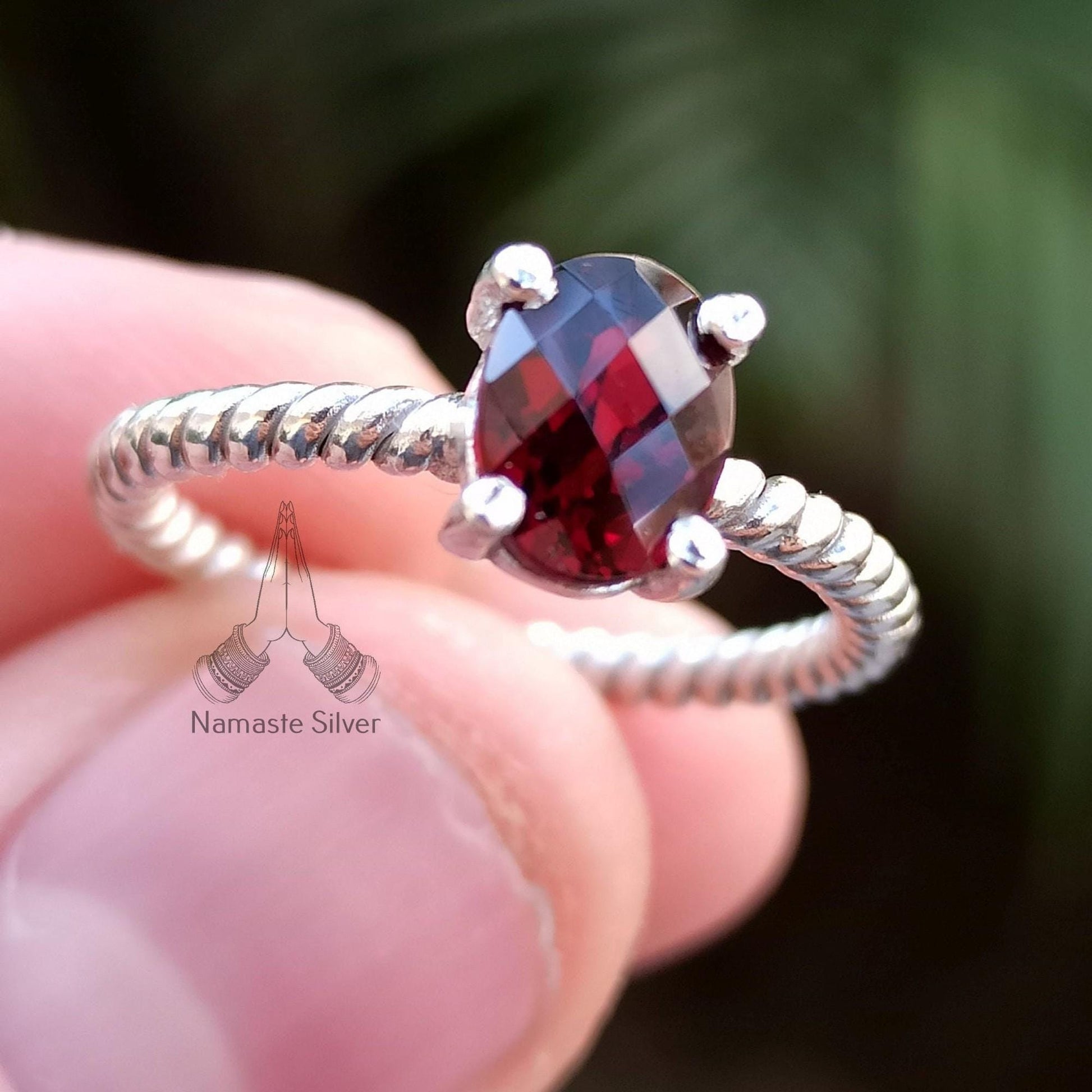 Garnet Ring, 925 Sterling Silver Dainty Ring for Women, Natural Garnet Oval Gemstone Handmade Boho Jewelry, January Birthstone, Gift for her