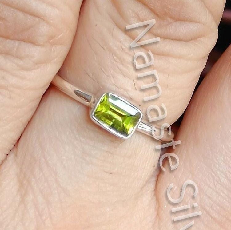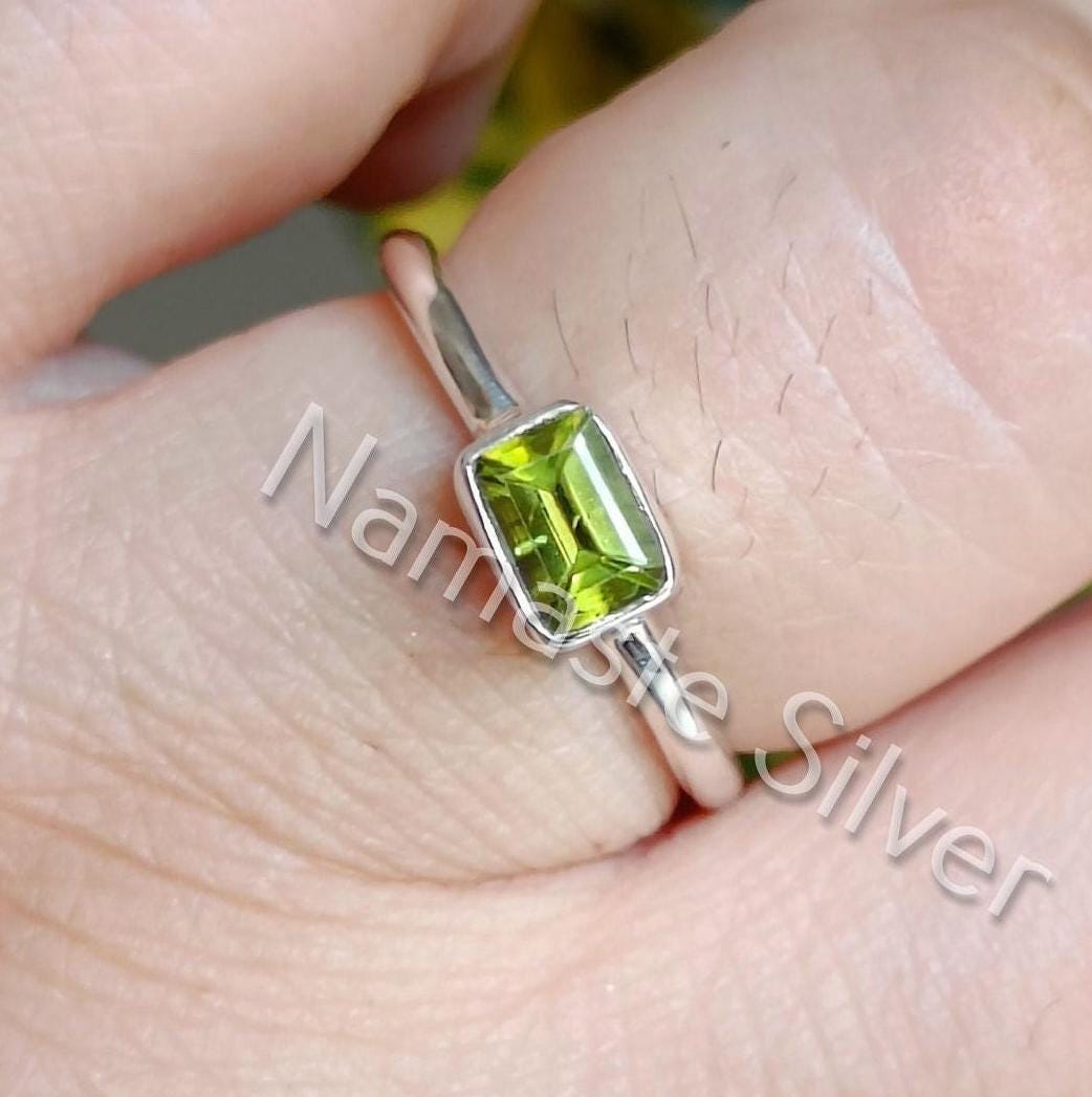 Peridot Ring, 925 Sterling Silver Dainty Promise Ring, Gift for her, Natural Peridot Octagon Gemstone Handmade Jewelry, August Birthstone